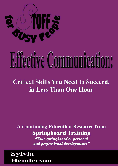 A continuing education resource from Springboard Training. Sylvia Henderson, CEO of Springboard Training, tells you how you can be a more-effective communicator as a result of her 20+ years as a corporate trainer, manager and communicator. The interview format makes the message more interesting and relevant for you than a "straight lecture".